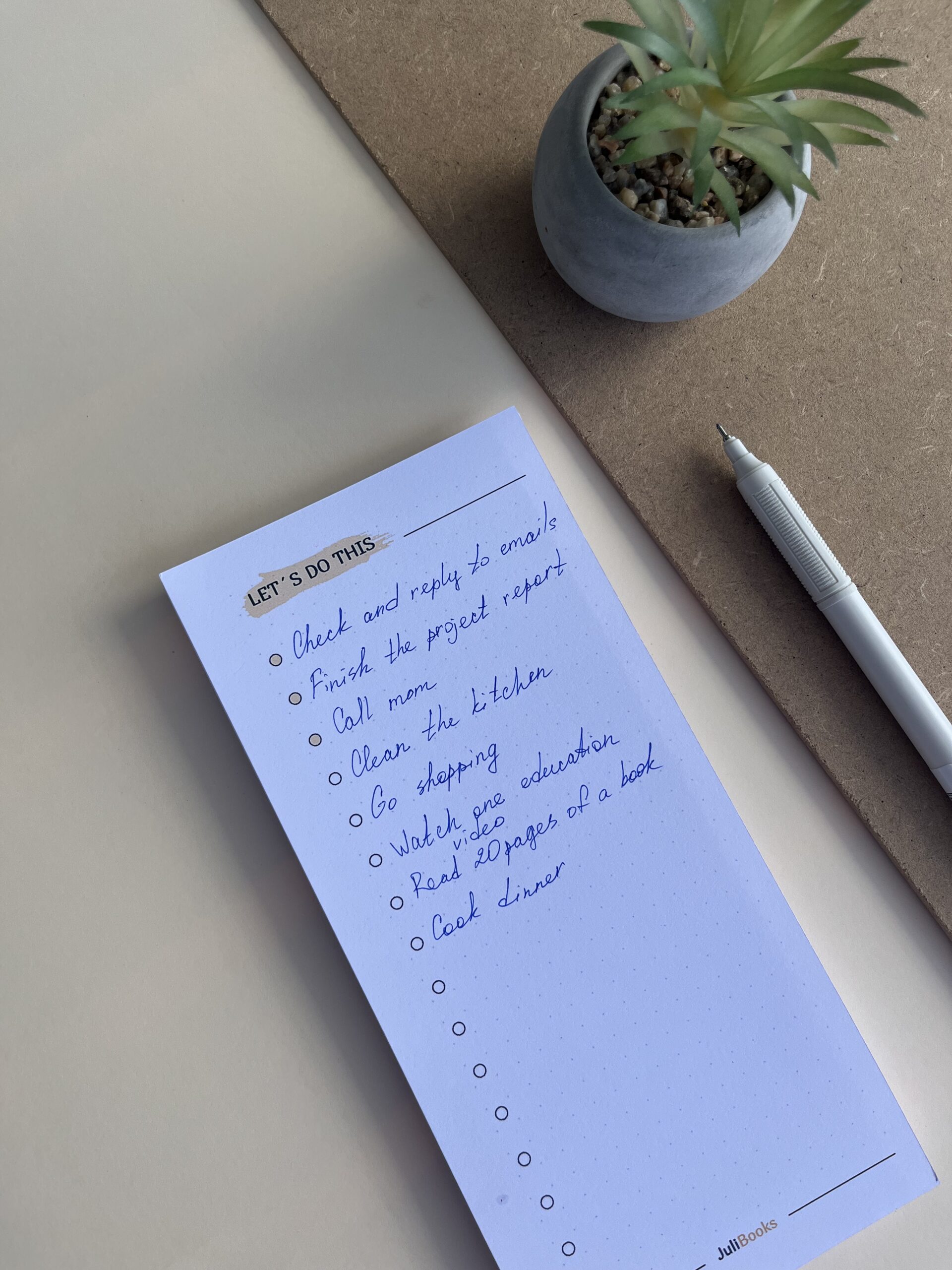 It is comfortable to hold in your hand and, due to the dense backing, you can write on weight. The easiest way to plan is a to-do list.